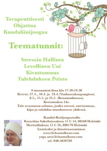 Kurssipaikka: Kundal-Kotijoogastudio Kruununhaka, Meritullinkatu 15 C 36, 00170 Helsinki. Huom: 3. kerros, ei hissiä.