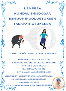 Tunneille voivat osallistua kaikki, jotka ovat kiinnostuneita tasapainottamaan immuunipuolustusjärjestelmäänsä ja rentoutumaan. Tunneille voi osallistua myös henkilöt, jotka ovat toipumassa flunssasta ja haluavat joogista tukea palautumisprosessiinsa. Tunnit voi tehdä myös tuolilla istuen.
