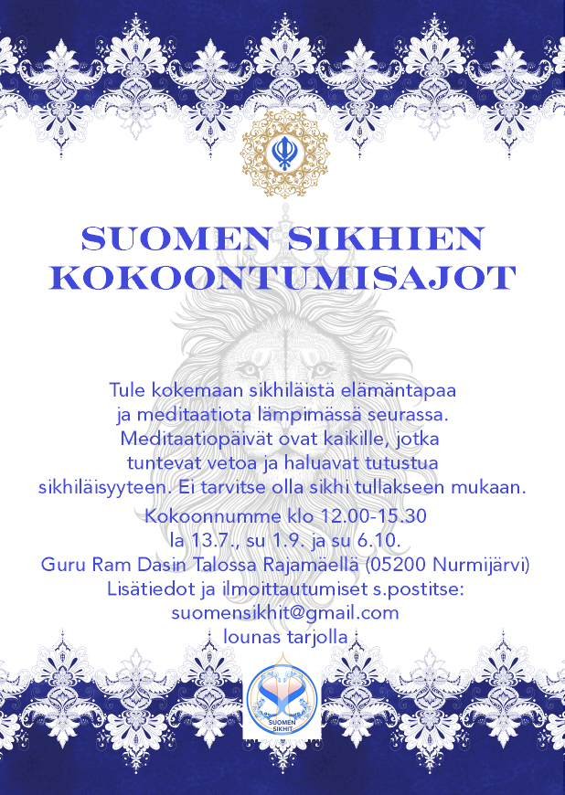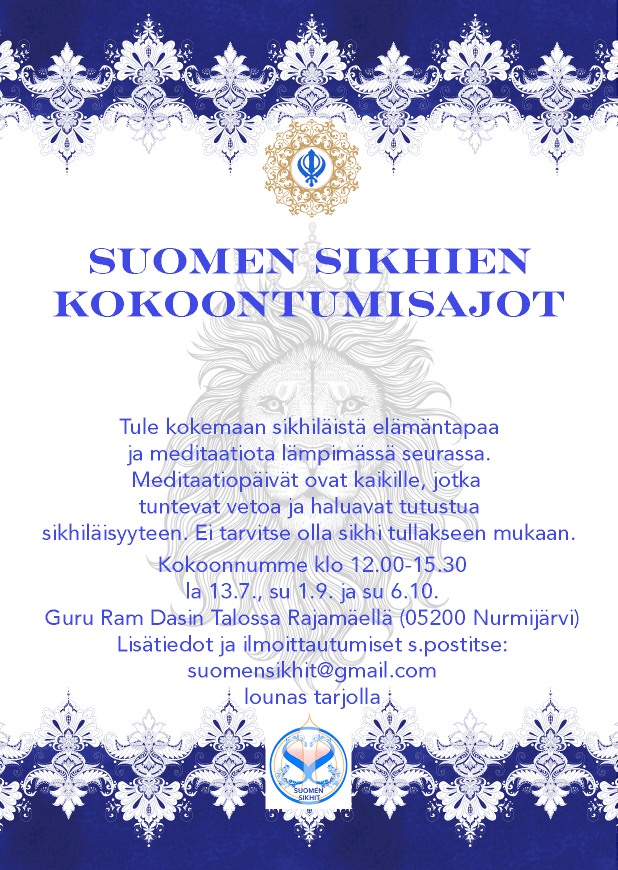 Lisätietoa tunneista saa Livkamal Kaurilta s. postitse (livkamalkhalsa@gmail.com) ja puhelimitse numerosta 040-5020789