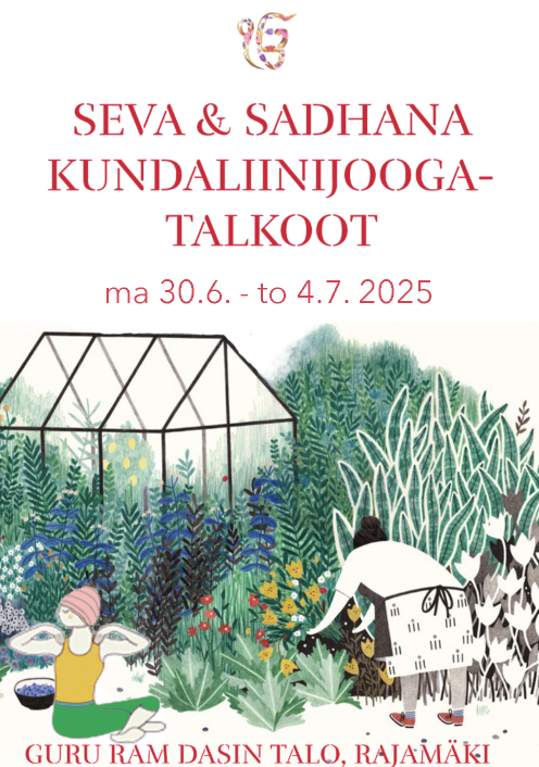 Tervetuloa tutustumaan joogiseen elämäntapaan pe 14. – su 16. heinäkuuta Guru Ram Dasin Talolle. Teemme yhdessä sevaa (vapaaehtoistyötä / karmajoogaa) ja sadhanaa (erilaisia joogaharjoitteita). Voit tulla haluamaksesi ajaksi; yhdeksi päiväksi tai koko viikonlopuksi.